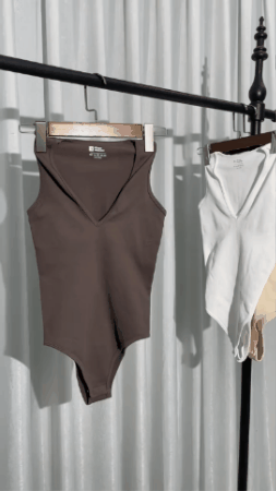 El corte en V del Body V no es solo un detalle estético: está diseñado para favorecer visualmente la proporción del cuerpo, este tipo de escote genera una línea vertical que estiliza la silueta y aporta elegancia instantánea.